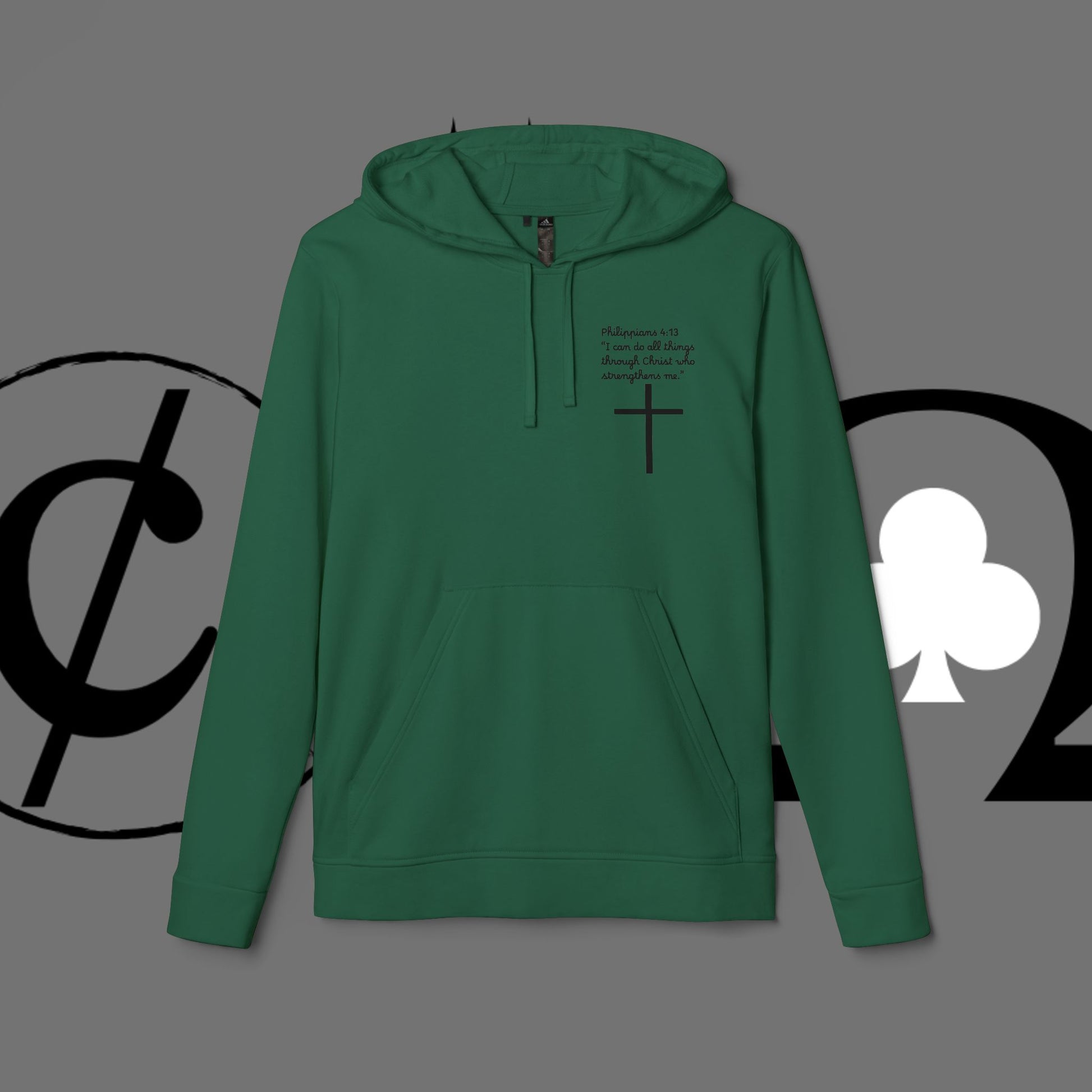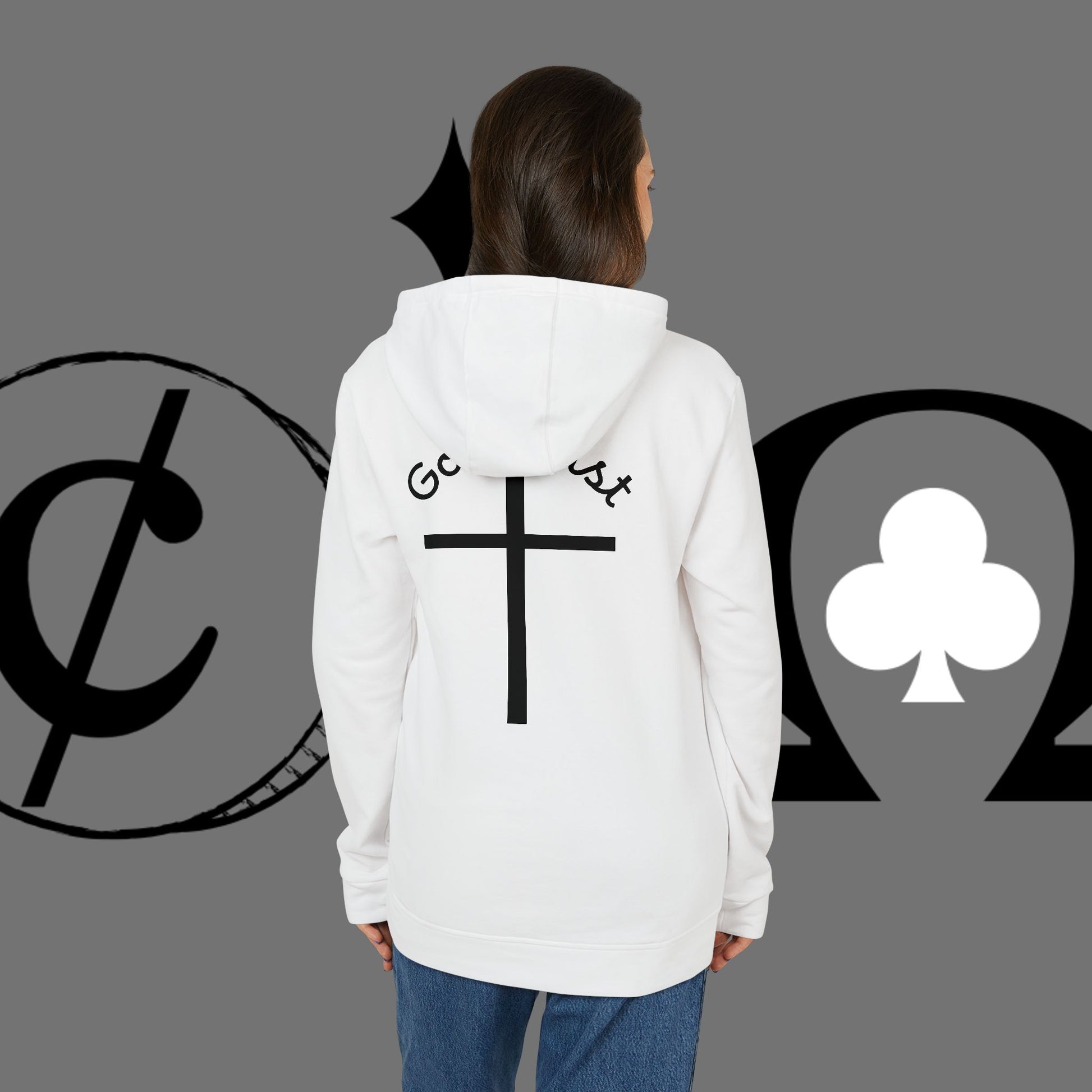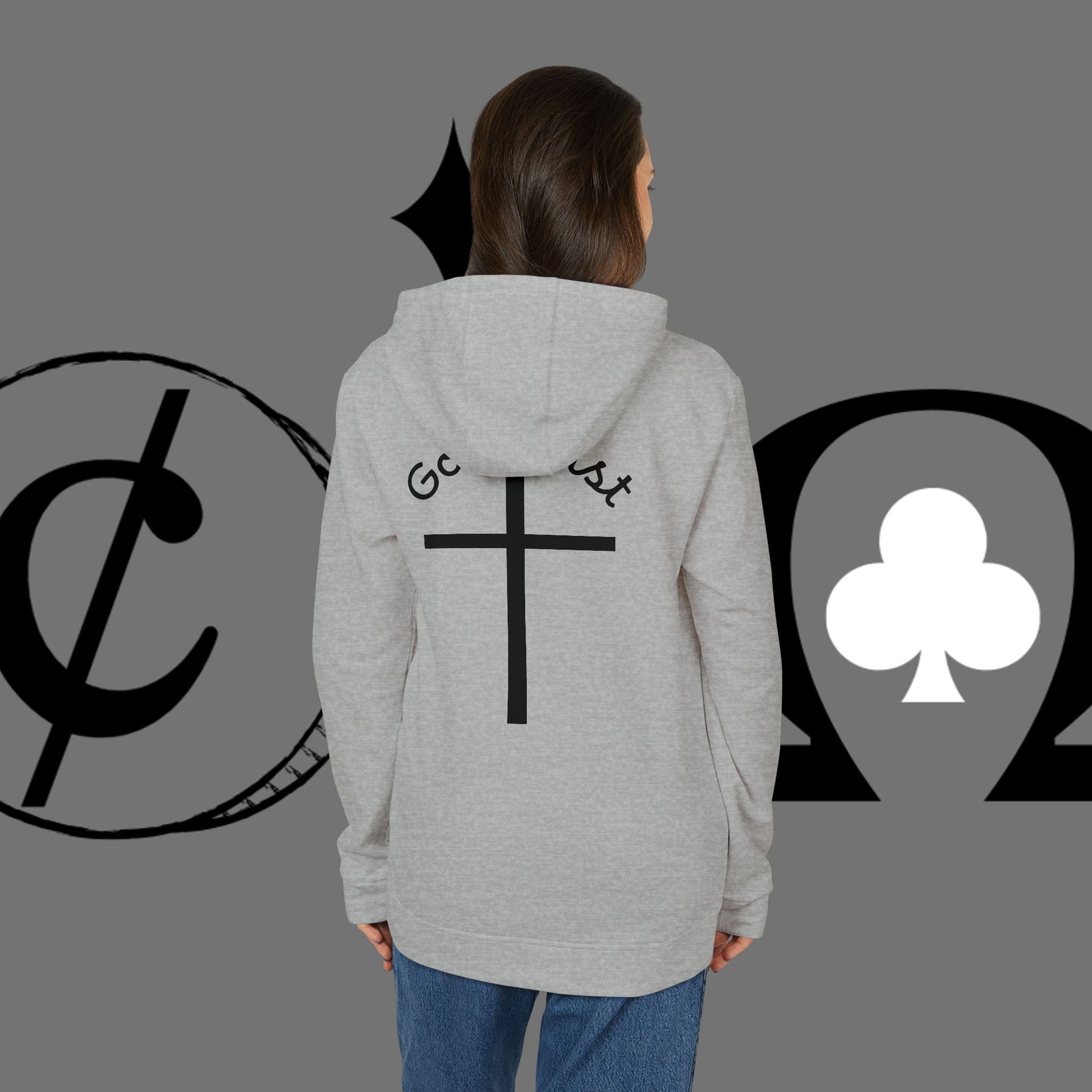 This lightweight yet substantial hoodie blends clean, minimalist faith-inspired graphics with everyday comfort. Soft BCI cotton and recycled polyester create a medium-heavy feel that holds shape and warmth, while the adjustable hood and kangaroo pocket add practical layers for cool mornings or quiet evenings. A bold, simple cross print sits on the chest and back, paired with small, handwritten-style lettering that whispers a personal message rather than shouting. The regular fit and cuffed hem keep the silhouette familiar and easy to move in — a quiet staple for those who want to wear their belief with understated style.