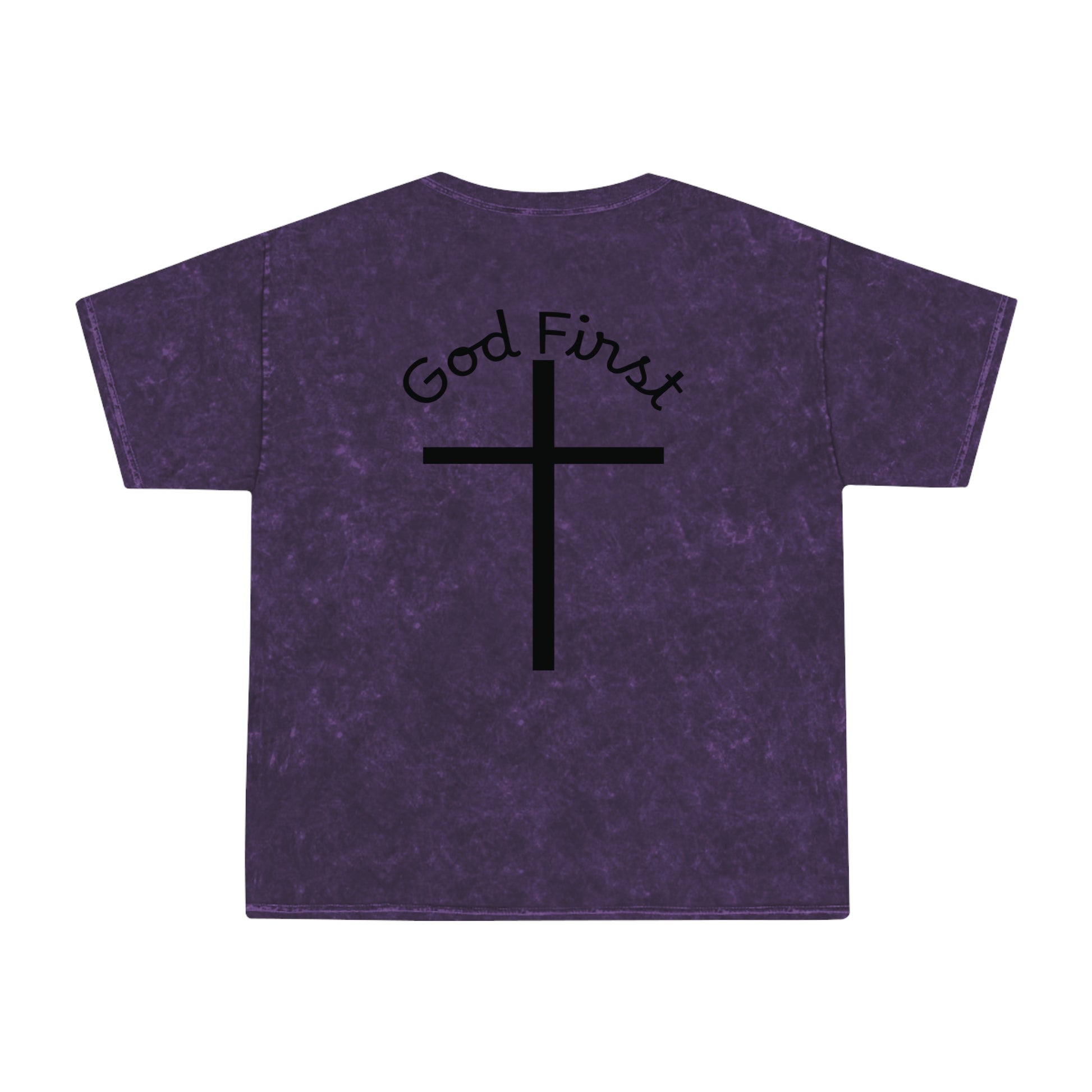 God First Mineral-Wash T-Shirt — Cross Christian Faith Tee