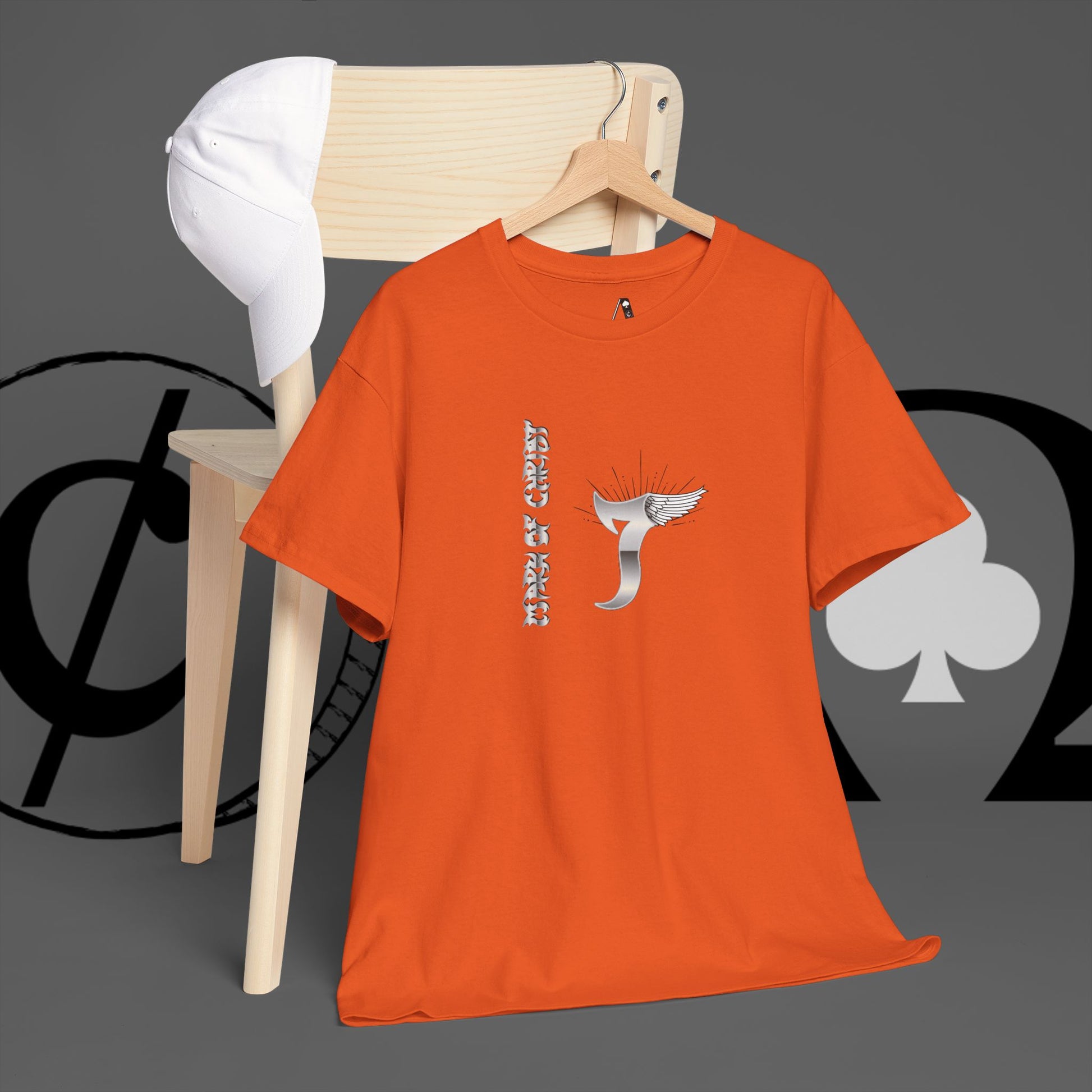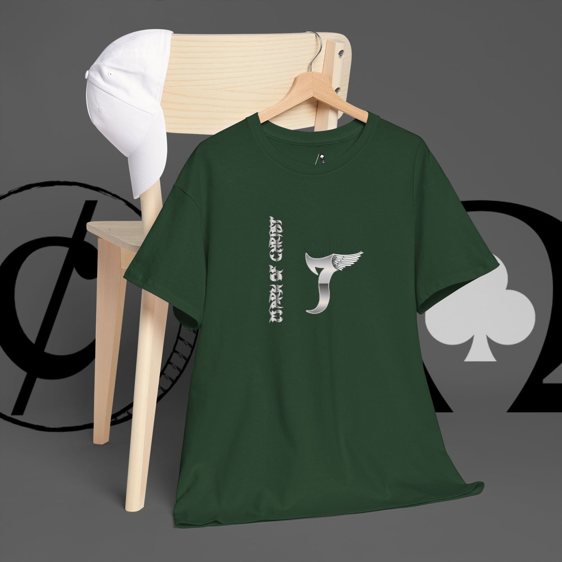 A lightweight, timeless tee with a quiet, modern edge. The small, sculptural emblem at the chest and vertical stylized lettering give this shirt a minimalist, gallery-ready vibe — subtle where you want subtlety, distinctive when people look closer. Wear it with relaxed jeans, an oversized blazer, or layered under a jacket for a low-key statement that reads contemporary and intentional. Soft, breathable cotton holds print detail cleanly, while the classic crew and relaxed cut keep movement easy all day. This is for people who prefer pared-back graphics and thoughtful proportion over loud logos.